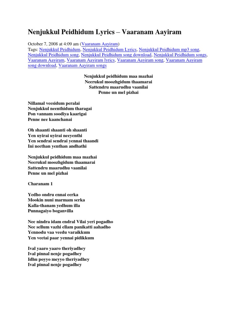 Vaaranam Aayiram Song Lyrics In English - Vaaranam aayiram is a 2008 tamil romantic drama written and directed by gautham menon. Vaaranam Aayiram Song Lyrics In English / There is no strumming pattern for this song yet.